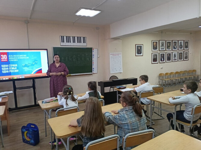 Этот праздник – символ справедливости, единения, сплочения русского мира. У нас общая история, общие корни, общее настоящее и будущее. В ДШИ №46 тематические беседы провела замдиректора по МР.