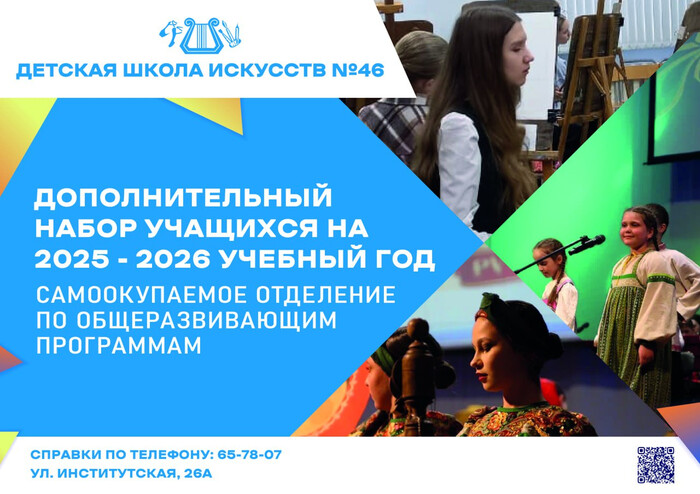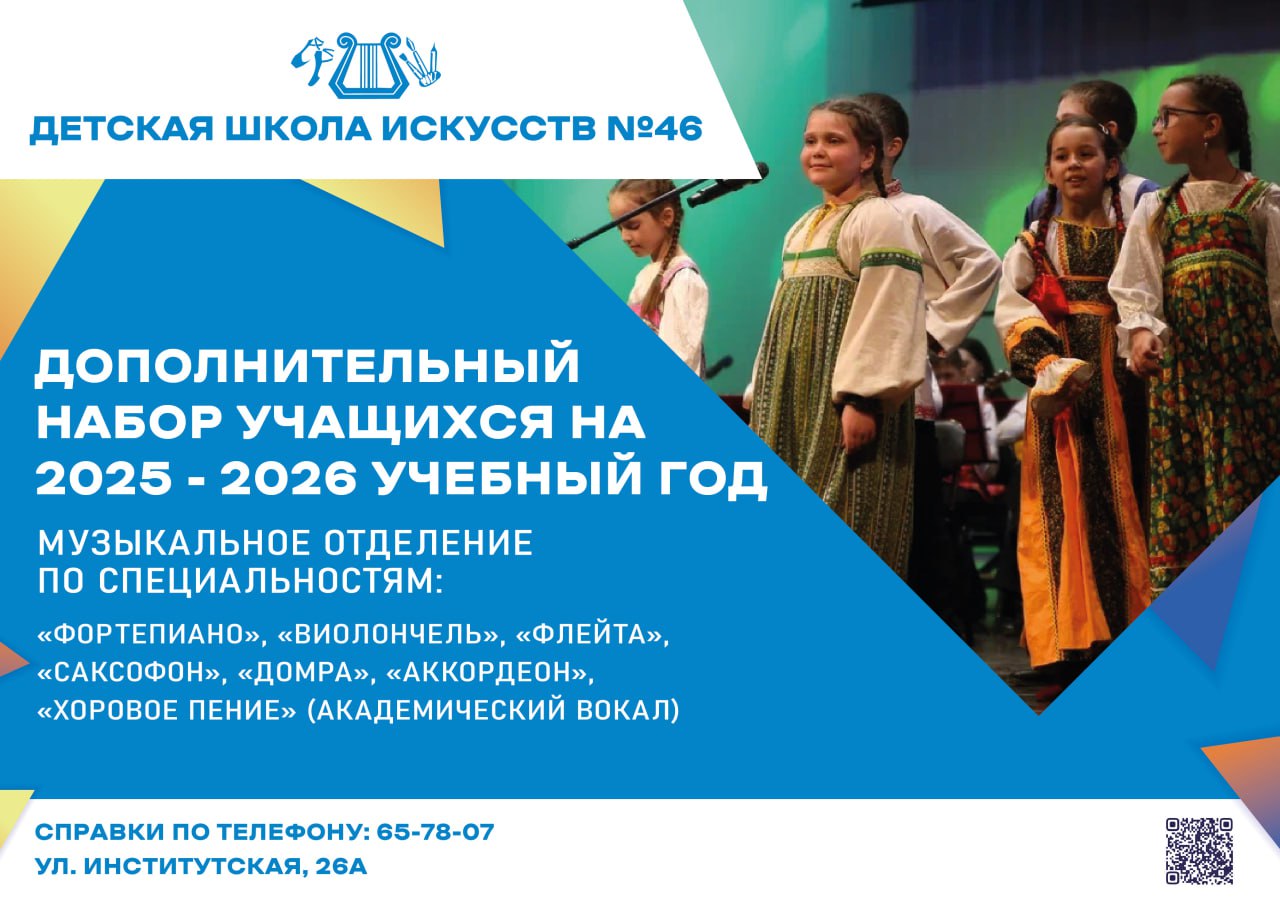 Дорогие родители! Детская школа искусств № 46 продолжает набор учащихся на 2025 – 2026 учебный год.