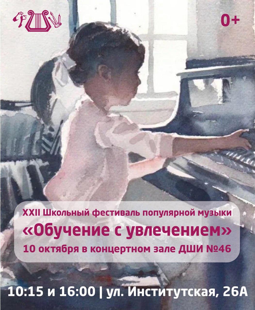 10 октября ДШИ №46 приглашает на праздник — XXII Фестиваль популярной фортепианной музыки! Яркие выступления, любимые хиты и море эмоций ждут вас в концертном зале в 10:15 и 16:00. Не пропустите!