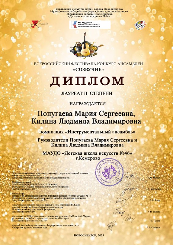29 ноября 2025 года подведены итоги Всероссийского фестиваля-конкурса ансамблей «Созвучие».