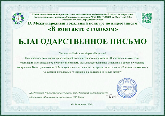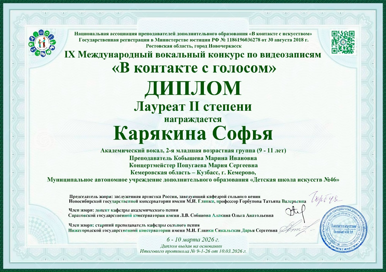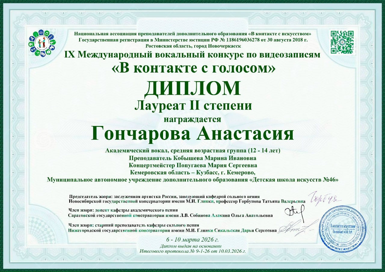 IX Международный вокальный конкурс по видеозаписям «В контакте с голосом».