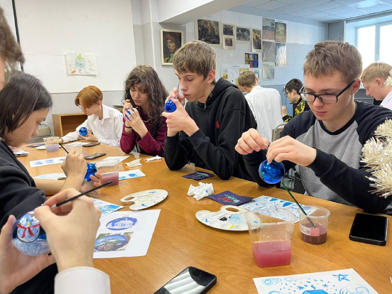 8 декабря в ДШИ №46 прошел мастер-класс по росписи ёлочных шаров. Его провела преподаватель вместе с учениками Кемеровского горнотехнического техникума имени В. Г. Кожевина.