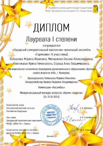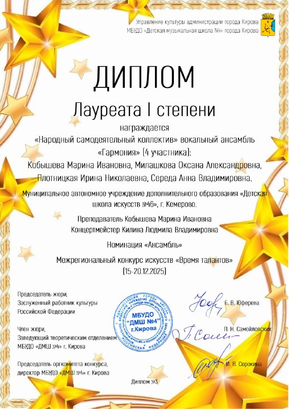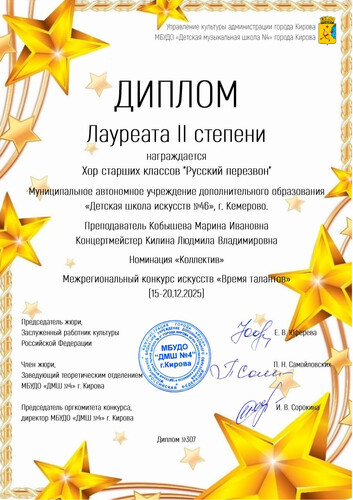 С 15 по 20 декабря 2025 года в «Детской музыкальной школе №4» г. Киров, при поддержке управления культуры администрации города, прошел Межрегиональный конкурс искусств «Время талантов».