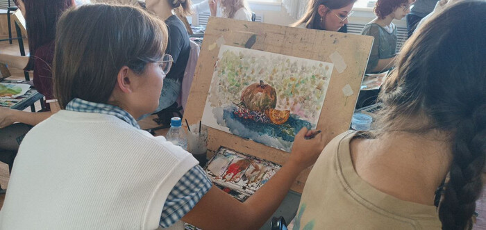 Учащиеся художественного отделения поучаствовали в мастер-классе, преподавателя академии акварели и изящных искусств, г. Москва. Вместе с ребятами в практической части мастер-класса поучаствовала преподаватель художественного отделения ДШИ №46.