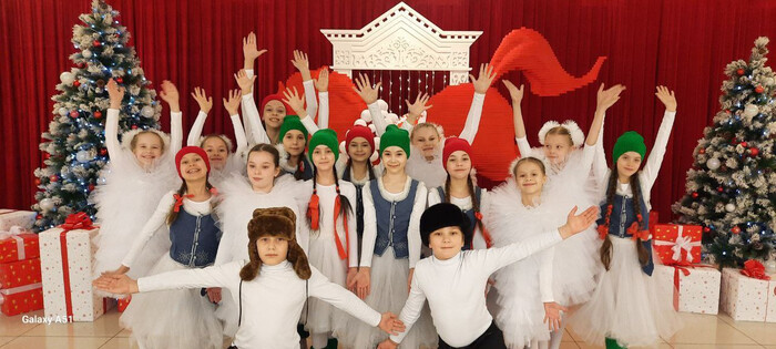 Нашу школу представляли старший и младший составы шоу-группы «Фантазеры» и театр танца «Веселуха». Они показали мастерство вокала и хореографии в номерах «Хозяйка гор», «Три белых коня» и «Снежная вечеринка».