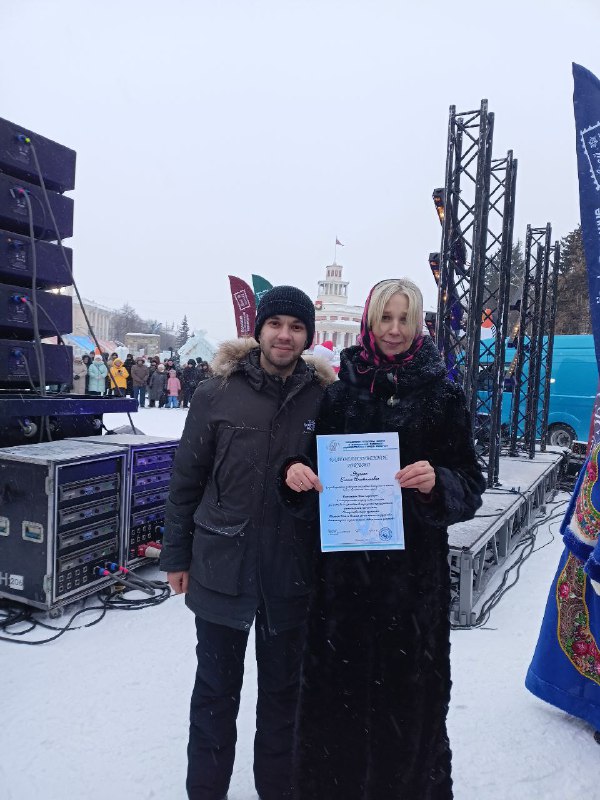 7 января в светлый праздник Рождества Христова на площади Советов прошли «Рождественские гуляния». Федор Федорович Горб вручил Благодарственное письмо преподавателю за активное участие в городской праздничной фольклорной программе.