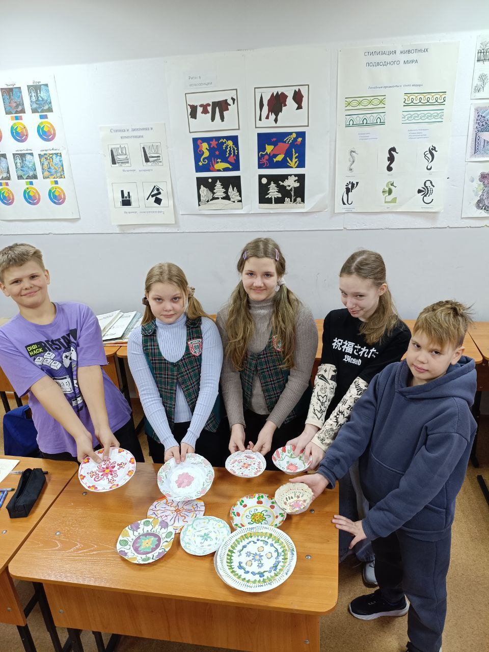 папье-маше сделали декоративные тарелочки. На уроках по живописи под