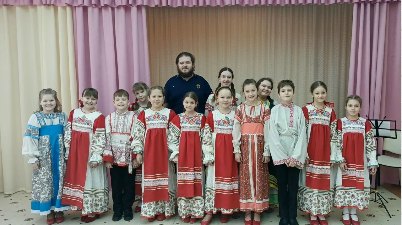 Под таким названием прошёл концерт ансамблей народной песни «Вороток» и «Зоренька» для маленьких зрителей детского сада №14. Маленькие зрители не только смотрели концерт, но и сами попробовали поиграть на народных инструментах под гармошку.