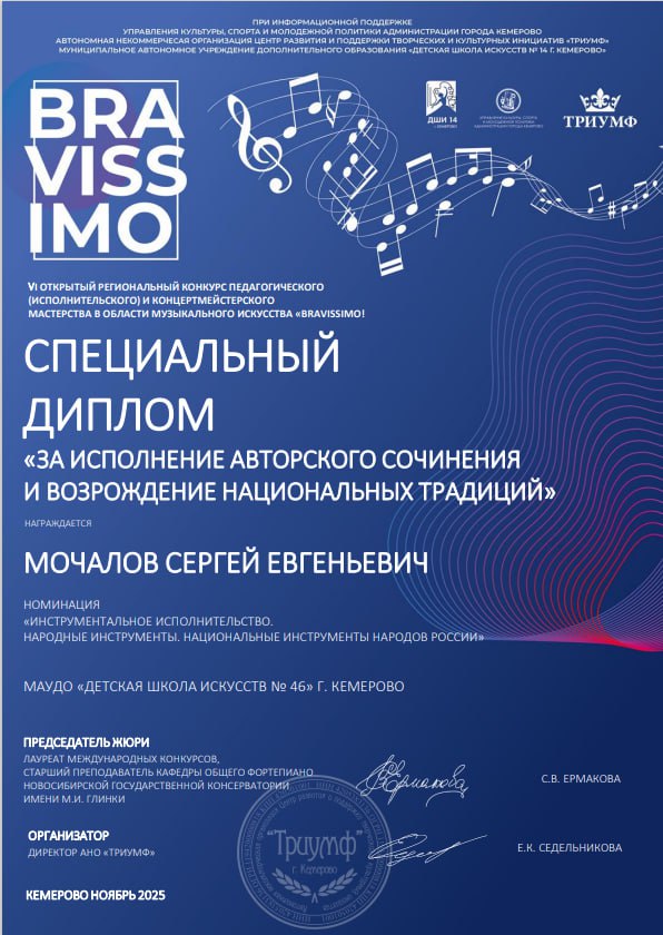 С 17 по 20 ноября в г. Кемерово состоялся VI Открытый Региональный конкурс педагогического (исполнительского) и концертмейстерского мастерства в области музыкального искусства «Bravissimo».