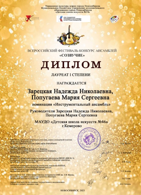 С 20 октября по 29 ноября в г. Новосибирске состоялся Всероссийский фестиваль-конкурс ансамблей «Созвучие».